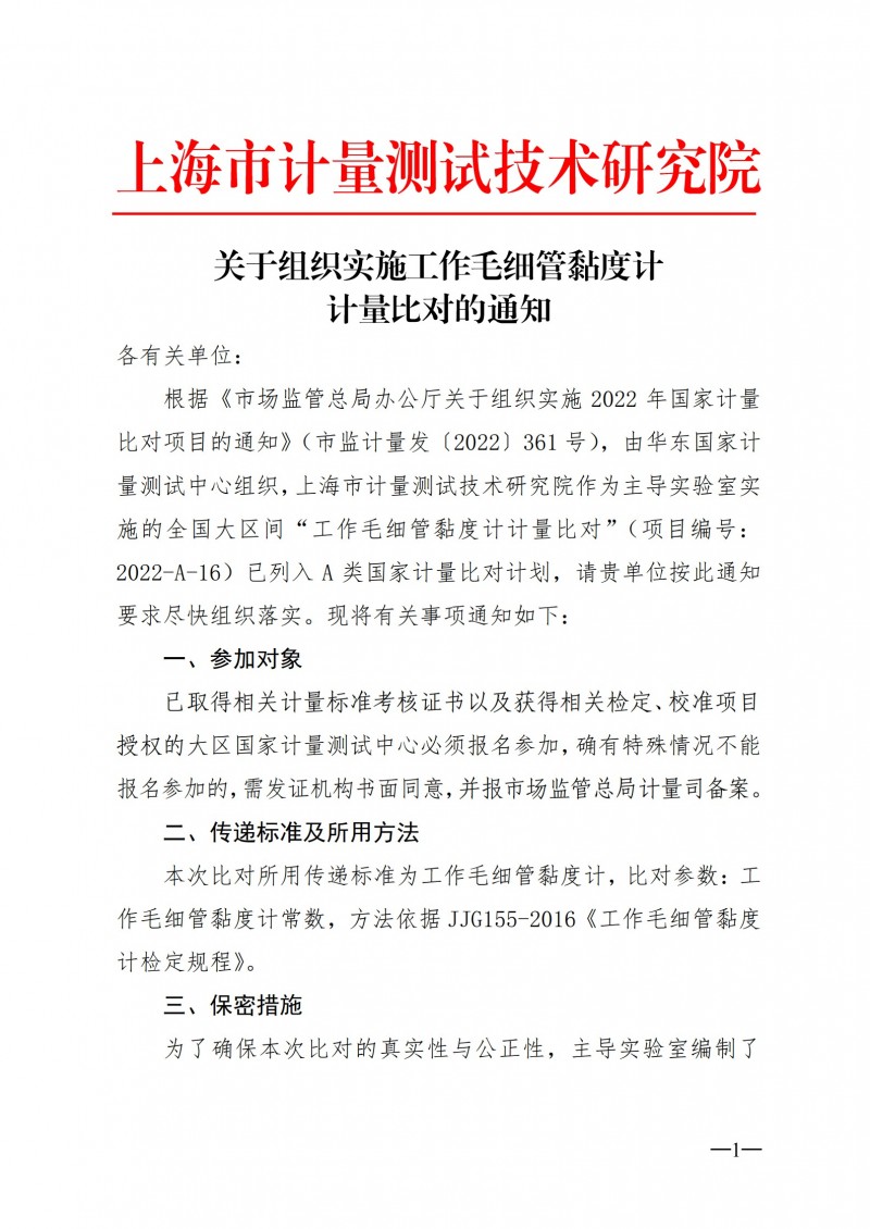 關于組織實施全國大區間工作毛細管黏度計計量比對的通知